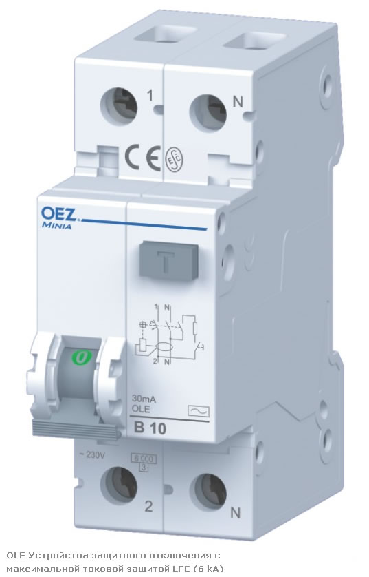 - УЗО OLE с максимальной токовой защитой LFE (6 кА)