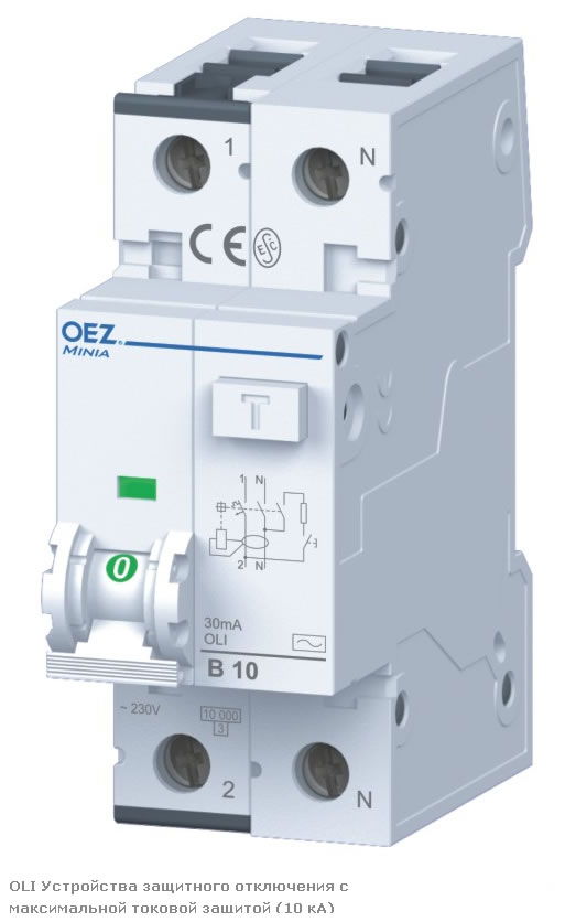 - УЗО OLI с максимальной токовой защитой (10 кА)